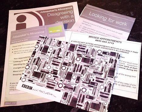 Now, I could wander into the Job Centre and tell them all about how I’m back writing scripts and I’ve got some at the BBC for perusal, but I’d just look a complete f’kin moron, plain and simple. I happened to make the mistake of mentioning this blog to the woman who originally interviewed me for my ‘Back to Work’ Job Seekers claim, in conjunction with my intended employment searches. I was met with a gaze into the brain of numpty-headed idiocy, so I proceeded with caution: